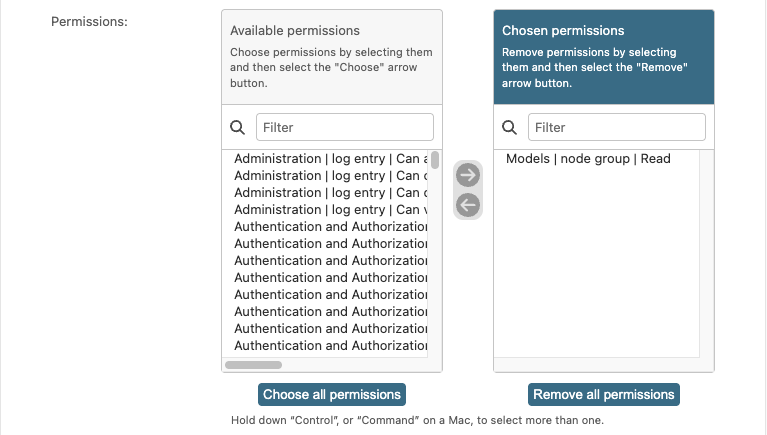 To reproduce, just visit the admin, edit a user, view the permissions select widget, observe placement of the help text.
