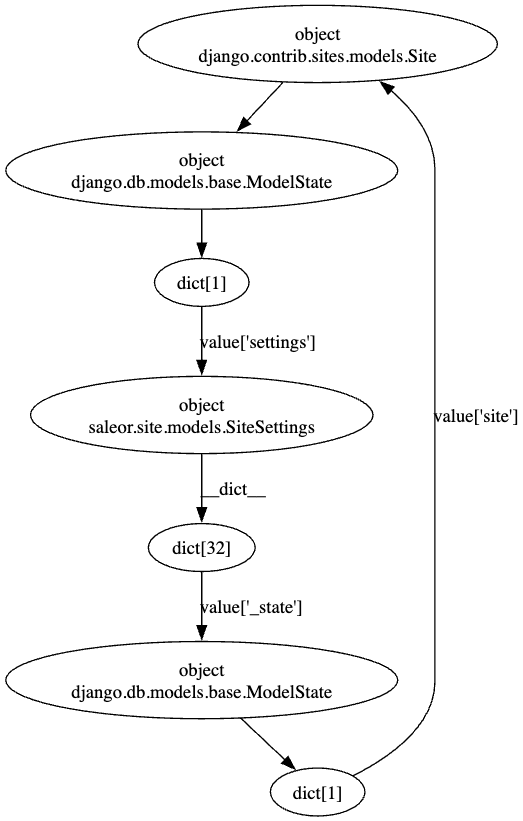 Each model instance includes a ModelState object that in turn contains references to other model instances. It's possible for those to be cyclic. In fact, the simplest cyclic case is a OneToOneField that links the states of both objects to the opposite side as soon as the relationship is traversed.